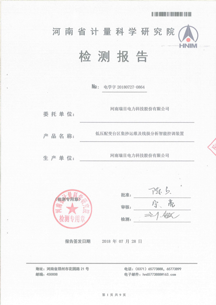 荣誉资质 河南瑞目智能科技有限公司先后被认定为河南省科技型中小企业、国家高新技术企业、郑州市“专精特新”企业、郑州市“雏鹰”企业、郑州市“亩产论英雄”A类制造业企业,公司取得了ISO9000质量管理体系认证、ISO14000环境管理体系认证、ISO45000职业健康安全管理体系认证。 目前,公司已经获得50余项知识产权,包含发明、实用新型专利、外观专利、软件著作权等。 科技成果 荣誉资质 工程研发中心 ISO管理体系认证证书 实用新型专利 软件著作权证书 设备检测报告